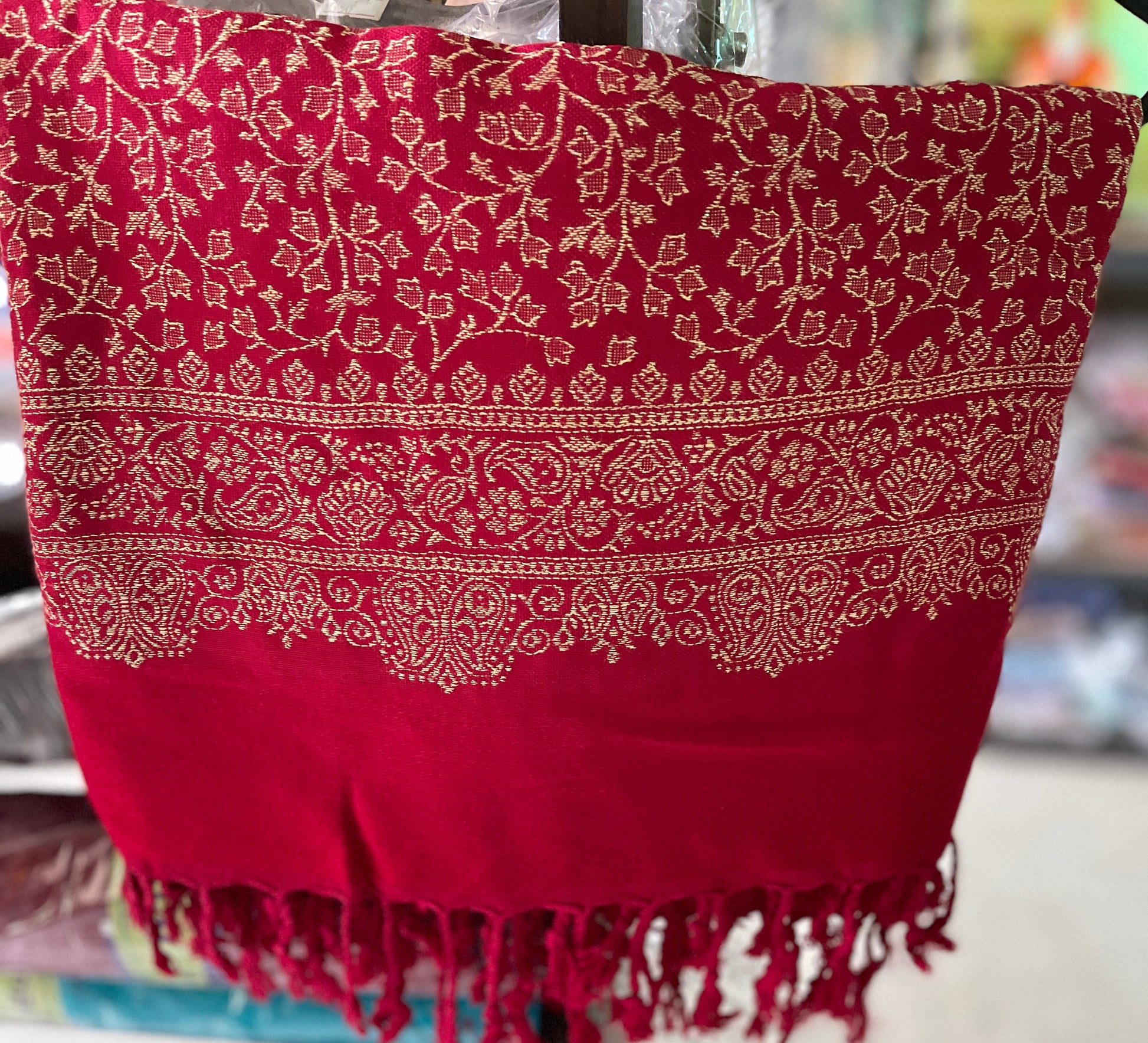 Red self print shawl (7)