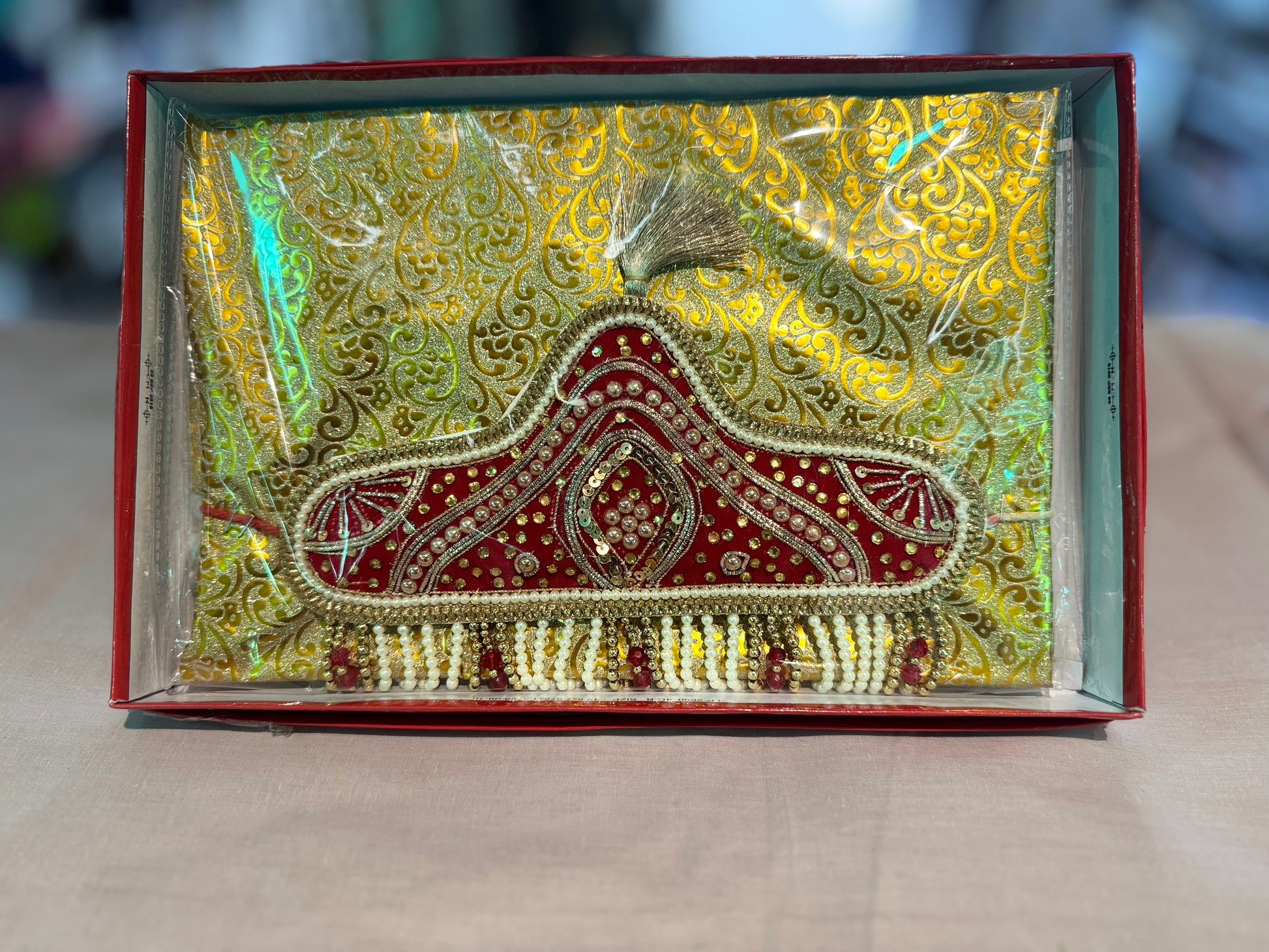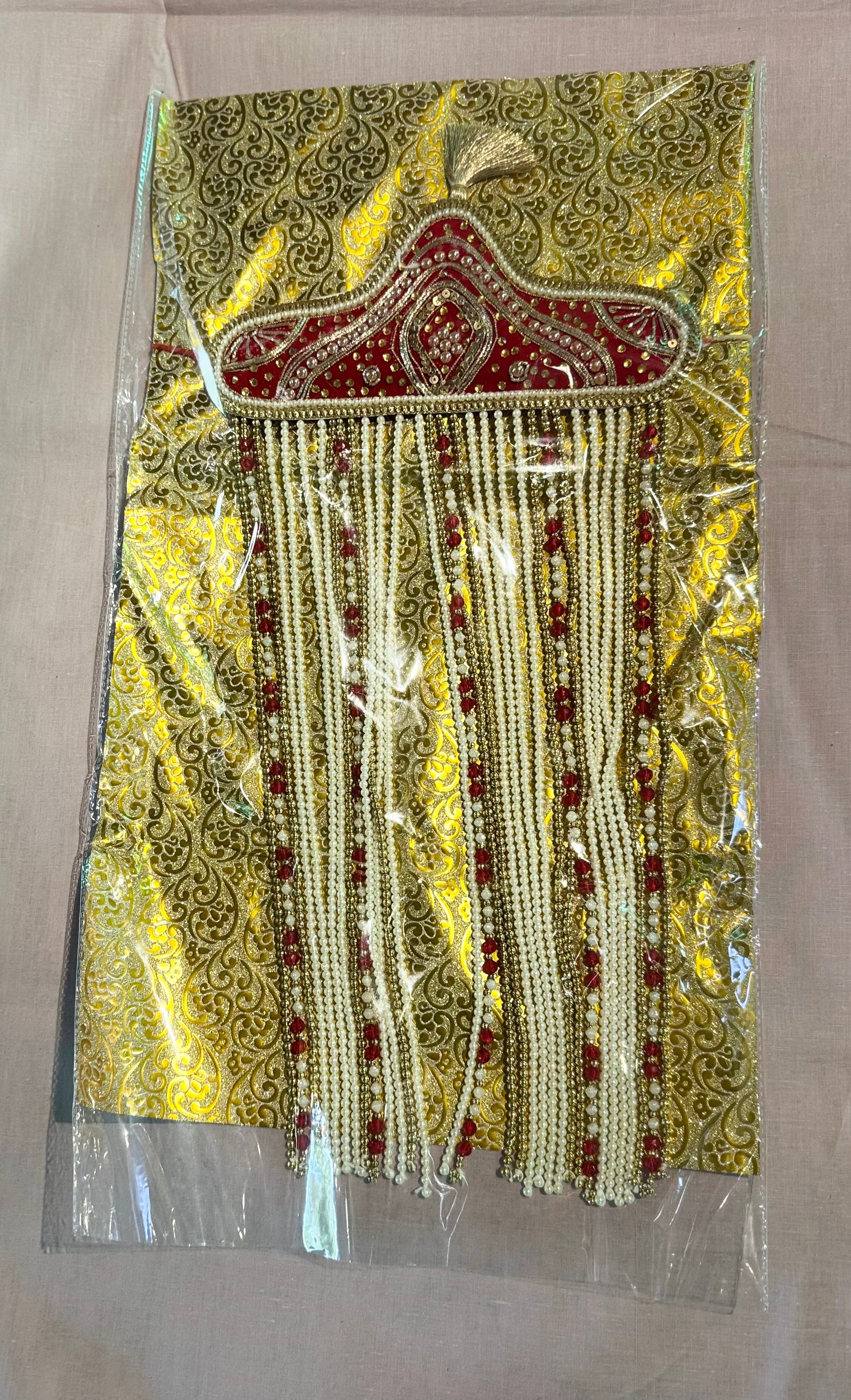 Sehra is a forehead garland/nuptial crown worn by the bridegroom (or even bride in some cases) during weddings in Indian subcontinent. This decorative groom’s veil can be made either out of flowers or beads and is tied to the groom’s turban or Pagdi.